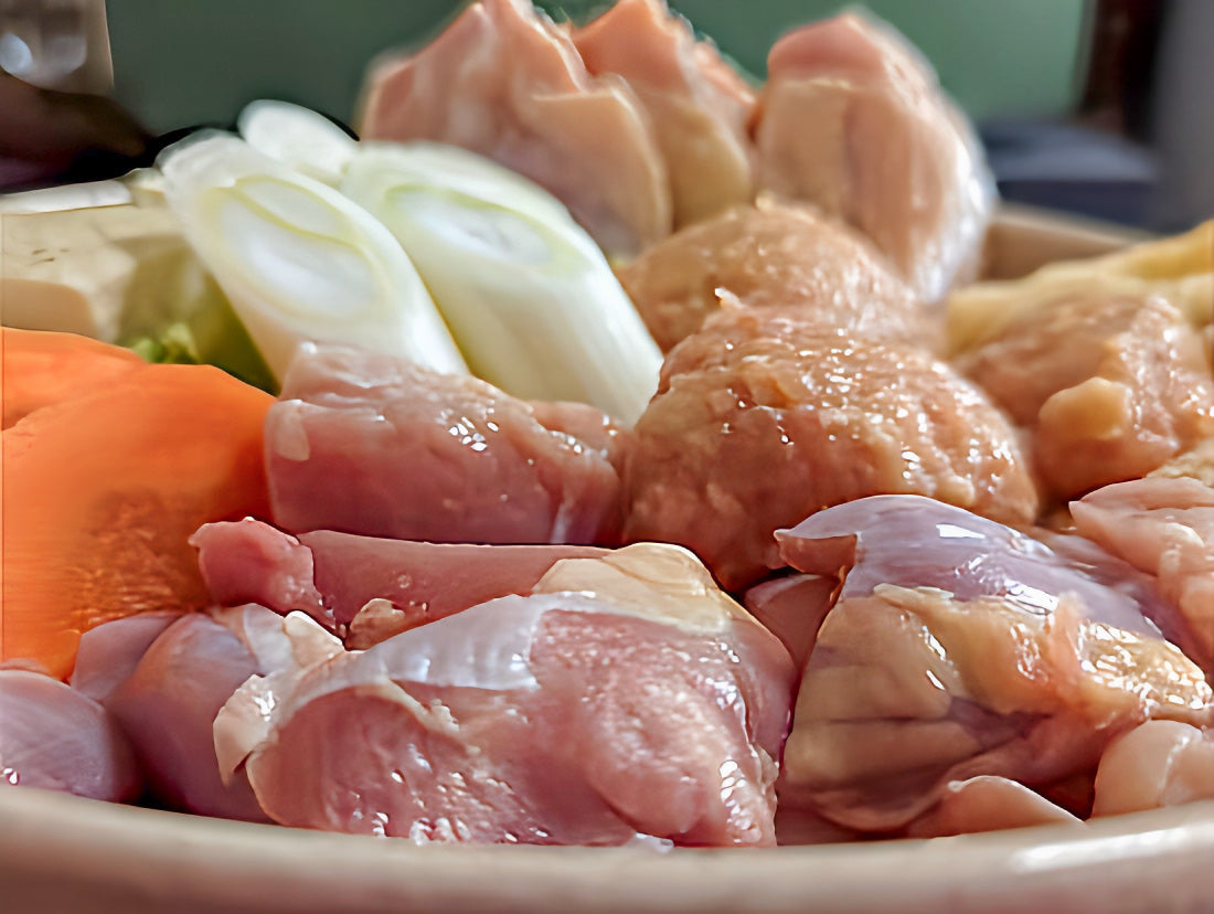 しっかりとした歯ごたえと濃厚な旨味をもつシャモロックの肉から、じわっと染み出す極上の出汁。そのスープを吸った南部せんべいは、もちもち&つるんとした独特の食感に。2人で囲む食卓に、ちょっとした贅沢を。お好きな具材と一緒に煮込んでお召し上がりください。